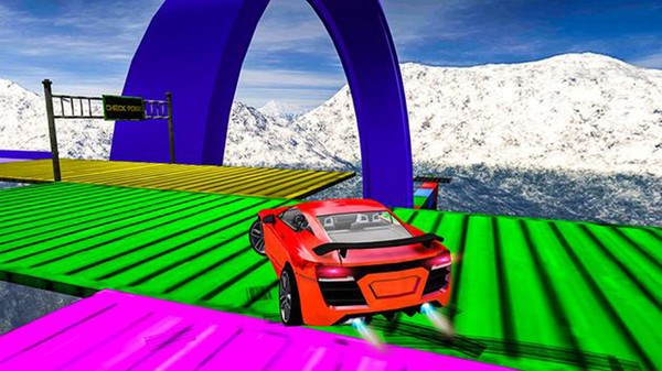 1. 玩家驾驶汽车在大型坡道顶端准备出发,要精准把握时机启动。