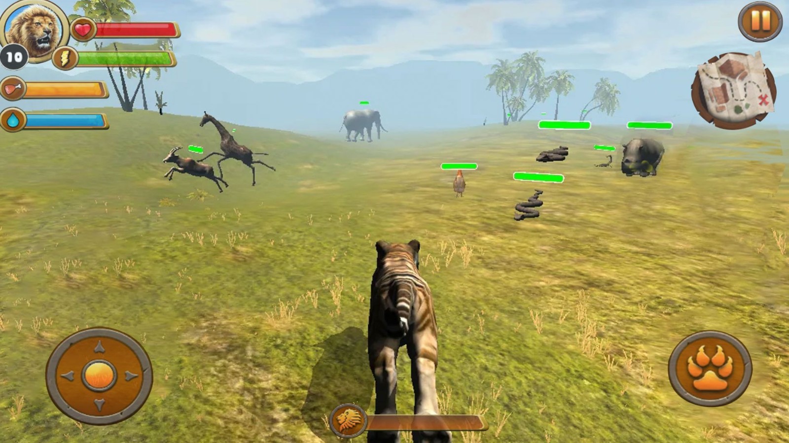 《丛林老虎模拟器最新版》是一款超刺激的安卓游戏。玩家将化身威风凛凛的丛林老虎,穿梭在茂密丛林中。逼真的环境音效与细腻的画面,带来沉浸式体验。在丛林里,你能尽情展现老虎的本能,捕猎、探索,感受大自然的神秘与挑战,开启一场惊心动魄的丛林冒险之旅。