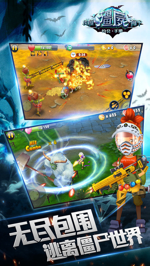 1. 玩家可操控角色进行各种战斗,利用技能与僵尸对抗。
