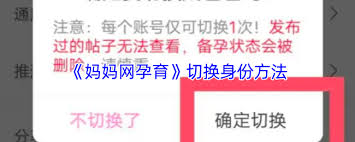 通过简单的几步操作,就能轻松在妈妈网孕育上切换身份,开启更有针对性、更丰富的孕育交流之旅,让你在育儿的道路上不再孤单,收获满满的知识与温暖。