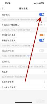 进入隐身模式页面后,您可以看到开启隐身模式的开关。点击开关,使其变为开启状态。开启后,您的陌陌状态将显示为隐身,他人在列表中无法看到您在线。