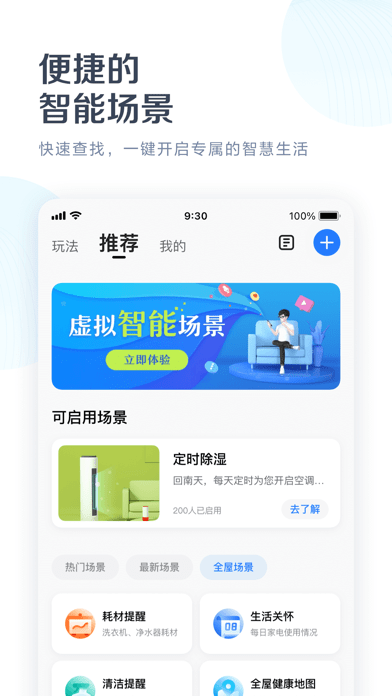1. 独特的智能场景联动功能,可根据用户日常习惯自动组合家电运行模式,如晚上回家自动打开灯和空调。
