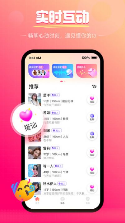 4. 互动发起方式:对感兴趣的用户可发送文字消息、语音条或虚拟礼物,连续互动3次以上可解锁视频通话功能,每日首次视频通话赠送10分钟免费时长。