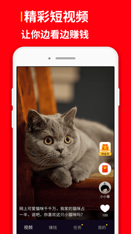 网赚红包短视频官网版是一款集短视频观看与现金激励于一体的安卓应用,用户通过浏览平台提供的娱乐、生活、知识类短视频即可获得金币奖励,金币可按比例兑换为现金并提现至微信账户。该软件以“边看边赚”为核心模式,整合了实时热门视频推荐、好友邀请奖励、开宝箱抽奖等多元化收益机制,同时支持每日签到、任务完成等低门槛操作,形成“碎片时间利用+现金回报”的闭环体验。平台内容涵盖搞笑段子、影视剪辑、生活技巧等20余个细分领域,日均更新量超5000条,确保用户持续获得新鲜内容与收益机会。