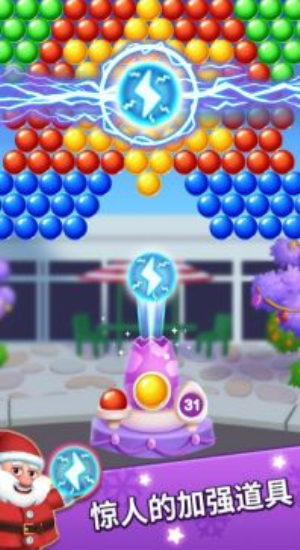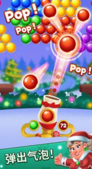 1. 游戏背景:圣诞泡泡龙以圣诞节为背景,玩家扮演圣诞老人或相关角色,环游世界收集被困在五彩缤纷的泡泡中的玩具。