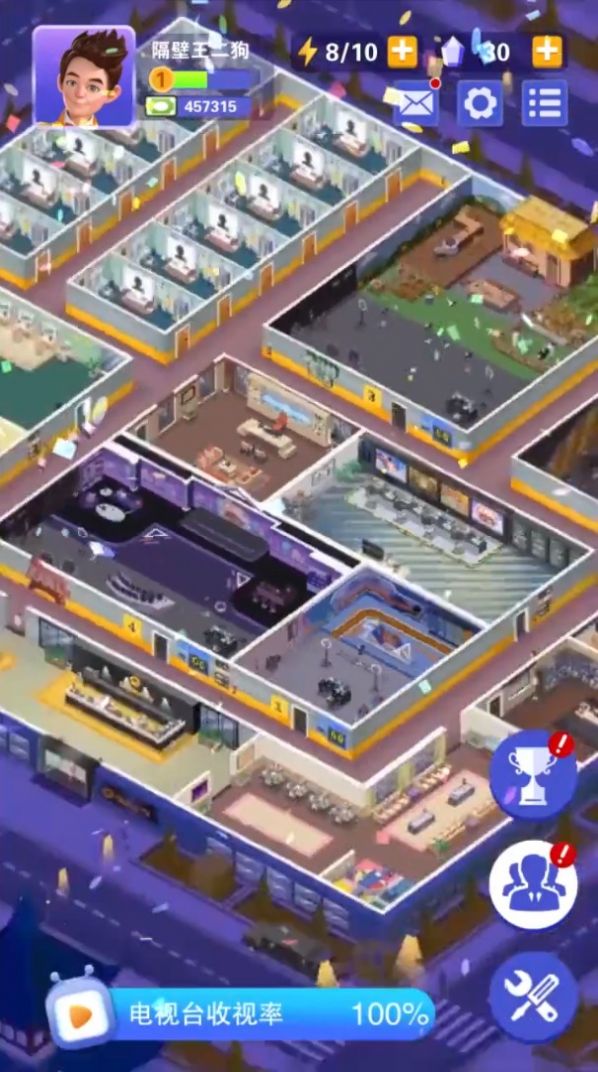 1. 高度自由的经营模式,玩家可自主决策电视节目的类型、播出时间等,充分发挥创意。