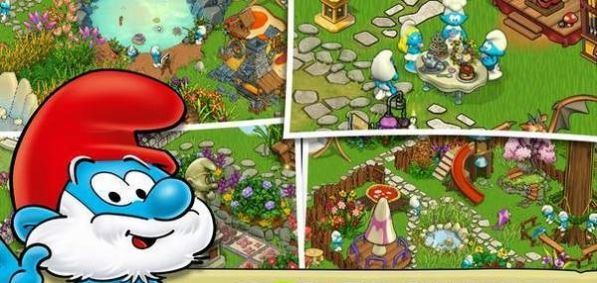 2. 草地上分布着各种资源点,如花朵、果实等,蓝精灵采集后可获得相应奖励。