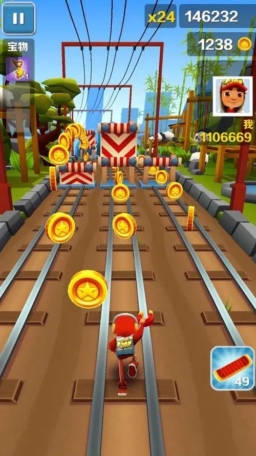 2. 途中可拾取金币、道具等,金币能用来购买角色、滑板等,道具可助玩家获得更高分数或特殊能力。