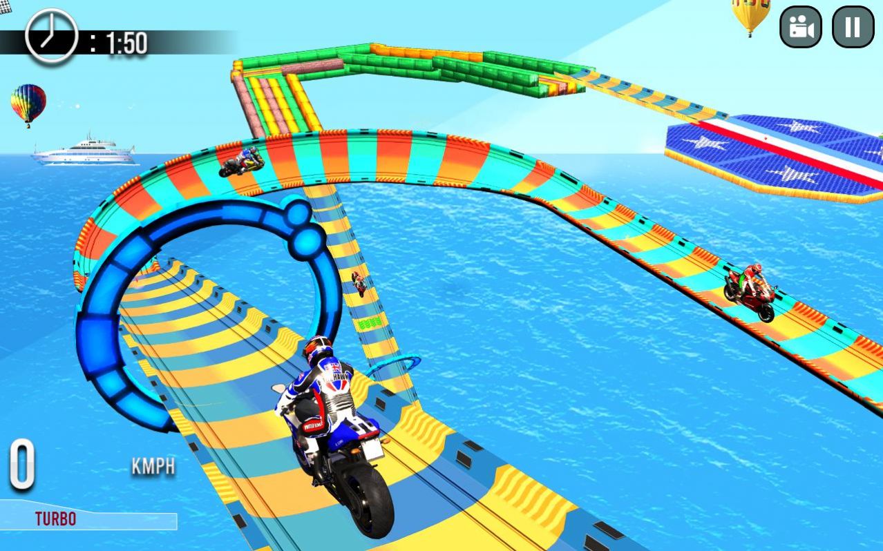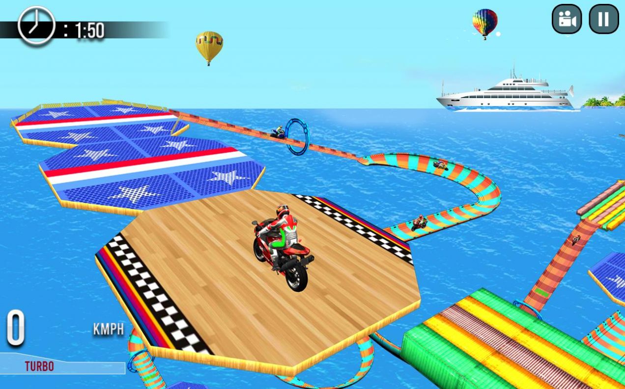 1. 通过重力感应和虚拟按键控制摩托车行驶与特技动作。
