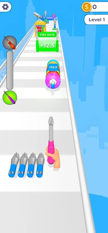 3. 留意收集路上的金币,用于购买更多不同的螺丝皮肤,增加游戏的趣味性。