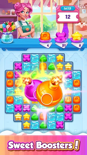 4. 每完成一定关卡可获得奖励,用于解锁新的甜品和道具。