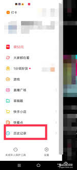 接着,在弹出的侧边栏中,向下滑动找到“历史记录”选项。这里便是快手历史记录的集中展示地。