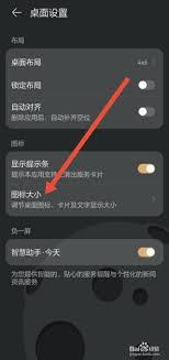 4. 在桌面设置里,有一个“图标大小”的选项,通过拖动滑块即可调整图标大小。向右拖动滑块图标会变大,向左拖动则图标变小,用户可根据自己的需求调整到合适的尺寸。